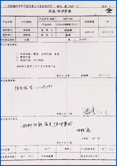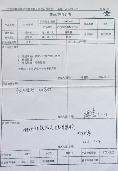 PTFE管料樣品/件評價表